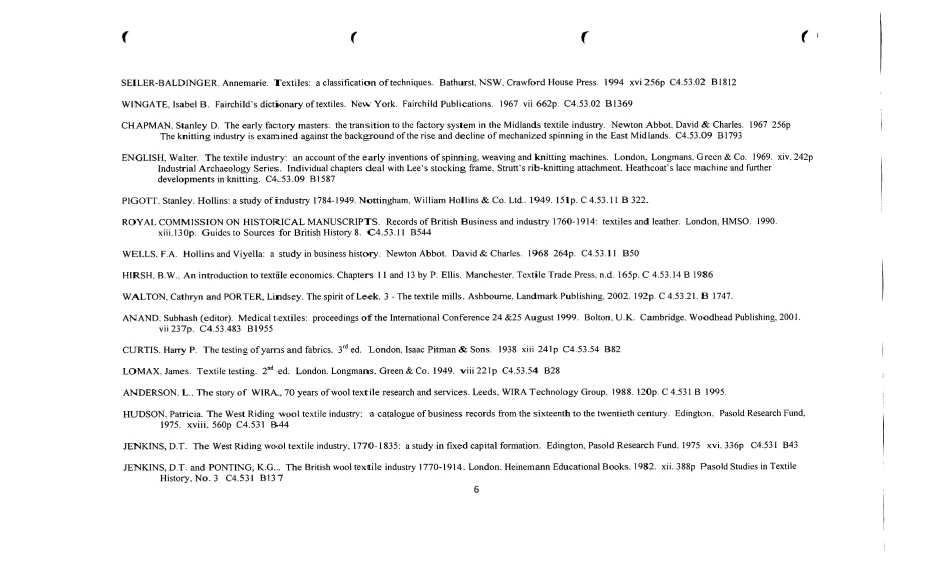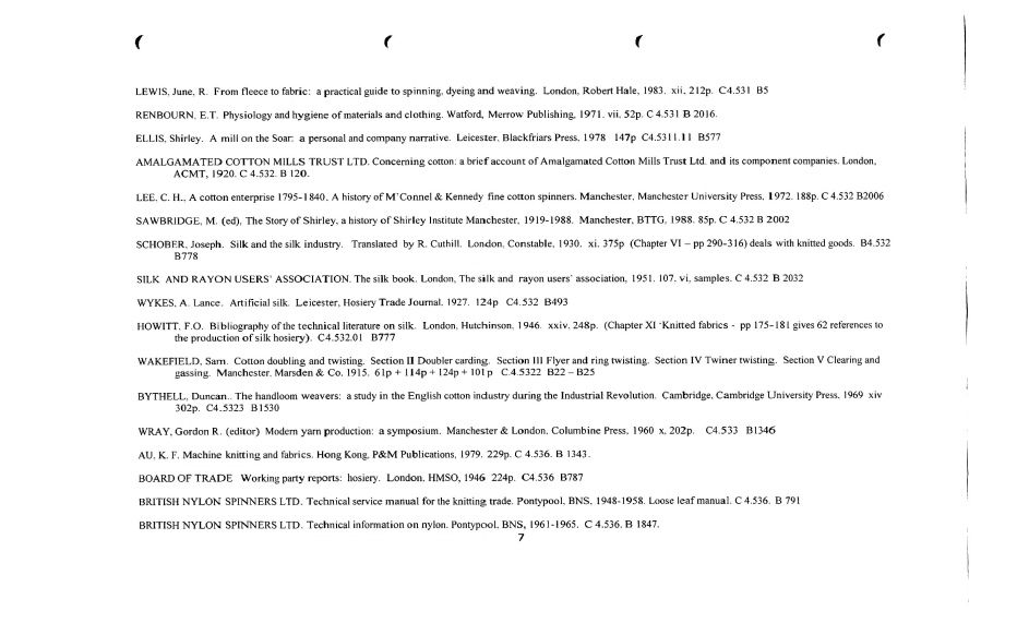 This library was the library of the Knitting Research Centre, Hatra, before its closure.